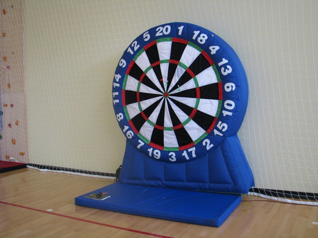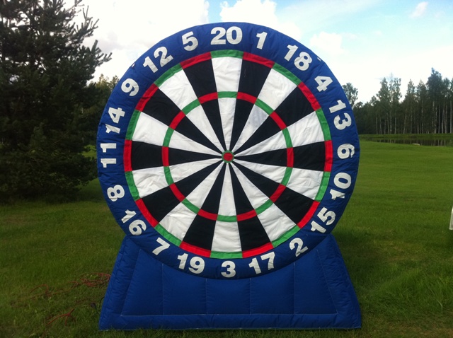 Suur täispuhutav nooleviskamise rõngas. Märklauda tabavad nooled haakuvad krõpsuga märklaua pinnal ja kinnituvad täpselt kohas, kuhu nool lendas.