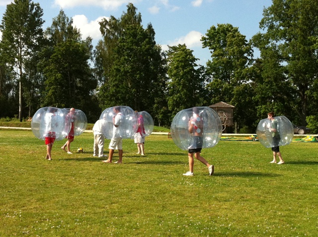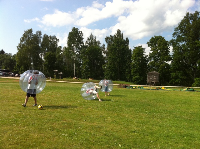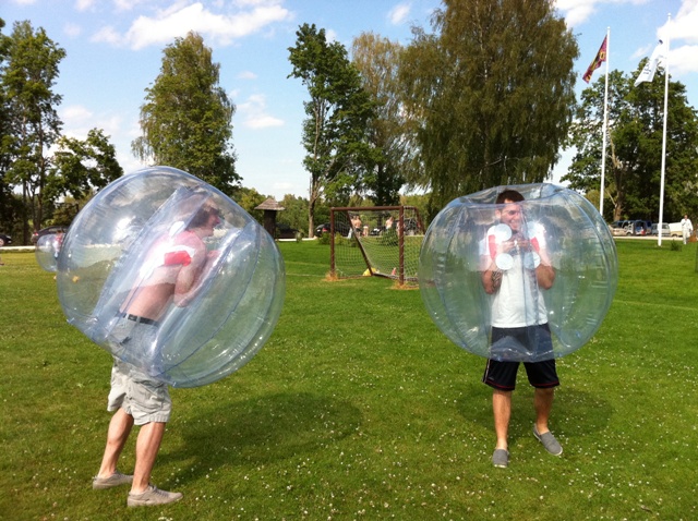 Midagi uut jalgpallis: 1,5 m lõbimõõtuga pall puhutakse täis, inimene poeb sisse ja siis jookse kas vastu vastast või vastu seina, vahet pole, kukkumisel turvalisus tagatud ja vigastused välditud.